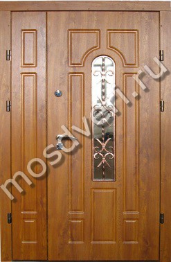 Двустворчатая дверь с МДФ, стеклом и ковкой — совмещает стильный внешний вид и высокую надёжность.